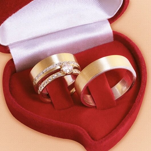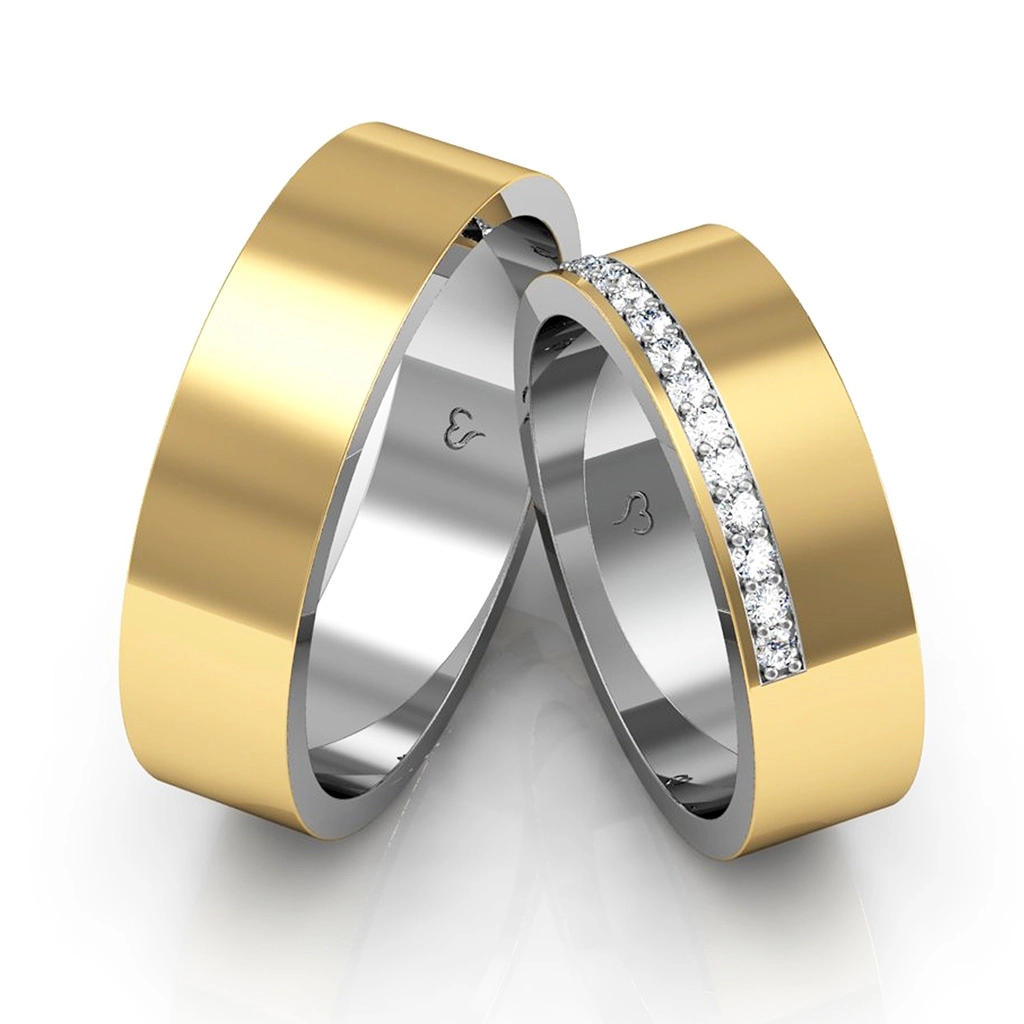 Kit Alianças Casamento Ouro e Prata + Anel Noivado Estasi